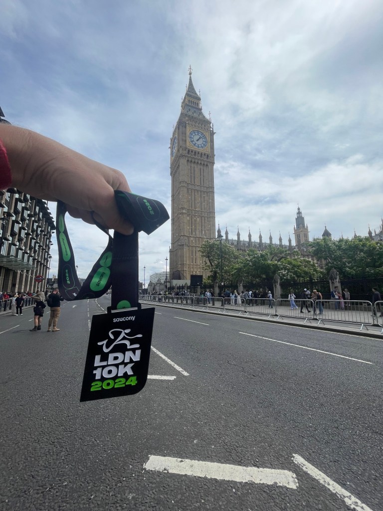 La préparation pour le London 10K a également été une aventure en soi. Courir à travers les rues historiques de Londres, entourée de milliers d’autres coureurs, a été une expérience incroyablement motivante. Chaque kilomètre parcouru m’a rappelé pourquoi j’aime tant la course à pied : le dépassement de soi, la persévérance et le sentiment d’accomplissement. Mais surtout, le fait d’avoir réalisé mon Record Personnel a été une immense source de fierté et de satisfaction. Les encouragements de la foule, la vue des monuments emblématiques tout au long du parcours, et l’euphorie de franchir la ligne d’arrivée ont fait de cette course un moment inoubliable.