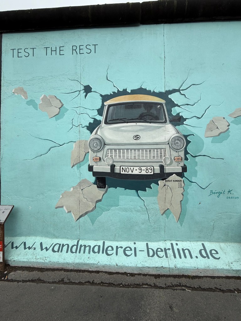 - Le Mur de Berlin : nous avons vu plusieurs portions du mur, recouvertes de street art, notamment à l’East Side Gallery, une galerie à ciel ouvert longue de plus d’un kilomètre. L’endroit est vibrant, coloré, et chargé d’histoire. Les enfants ont été fascinés par les dessins et ce qu’ils représentaient.